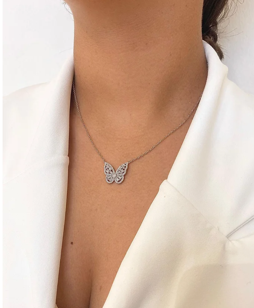 שרשרת פרפר משובצת עשוי מכסף אמיתי 925